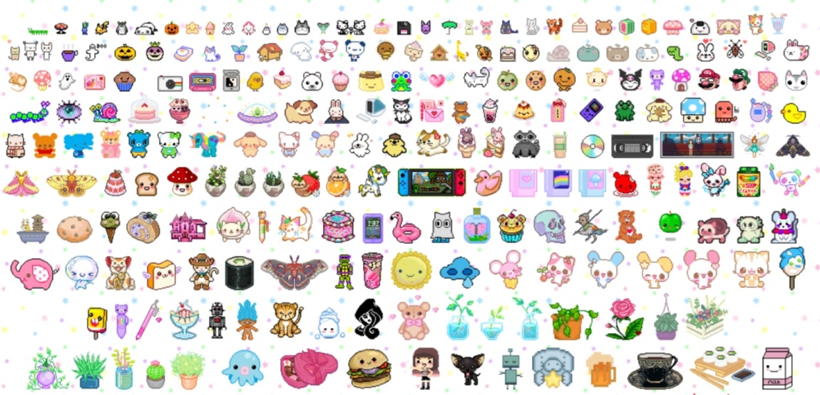 مجموعه ای از شکلک های متنوع "که اکثرا بچگونه هستن--__--" رو نشون میده